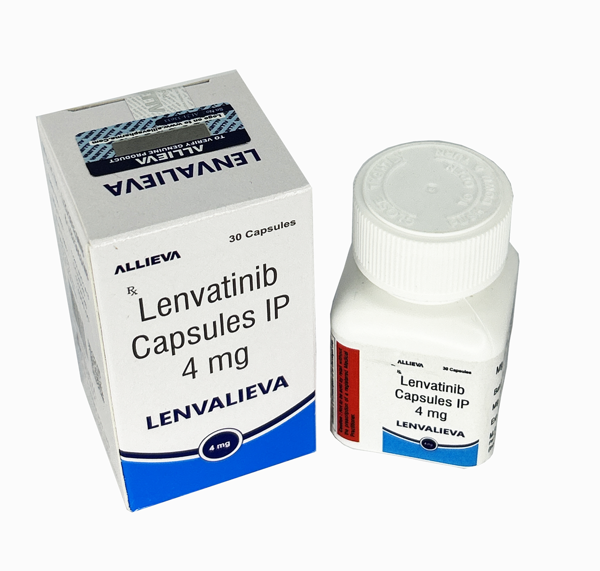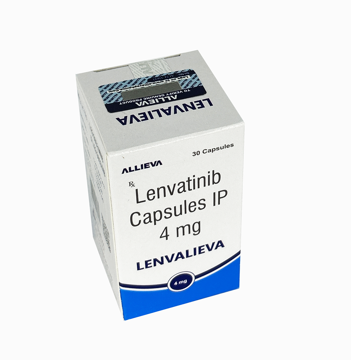 - Brand Name: The image shows the brand name "LENVALIEVA," manufactured by Allieva Pharma. Other brand names for Lenvatinib include Lenvima and Lenvatol.