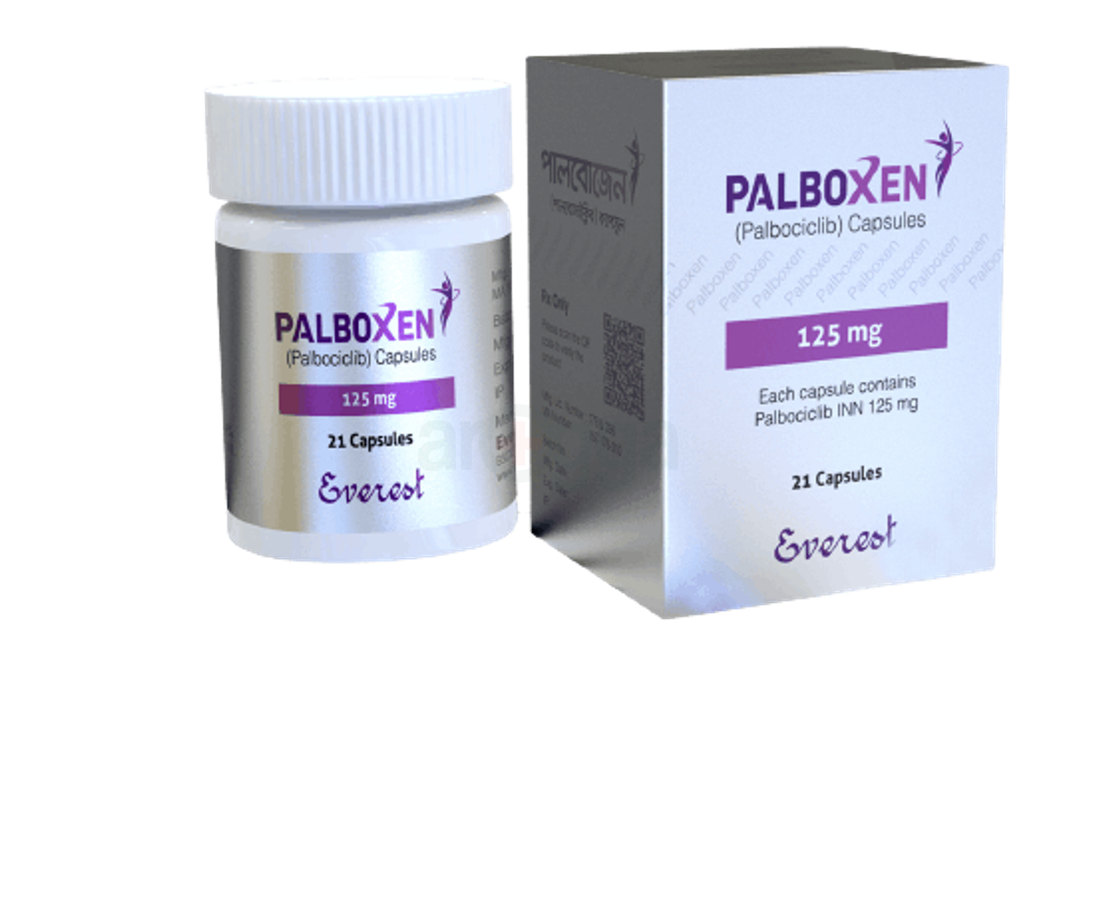 Palboxen (Palbociclib) 125 mg capsules are an anti-cancer medication used in combination with other hormonal therapies to treat specific types of advanced or metastatic breast cancer.