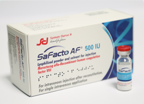 Safacto AF 500 IU is a medication used to treat and prevent bleeding in patients with hemophilia A, which is a congenital factor VIII deficiency. The medication contains moroctocog alfa, which is a recombinant human coagulation factor VIII. It works by replacing the missing factor VIII in the body to help the blood clot.