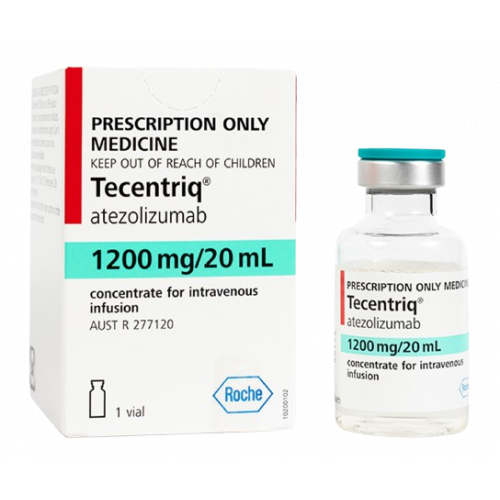 Tecentriq (atezolizumab) 1200 mg/20 mL solution for infusion is a cancer immunotherapy medication used to treat several types of cancer, including certain forms of lung, bladder, liver, and breast cancer. The medication works by stimulating the body's immune system to identify and attack cancer cells.