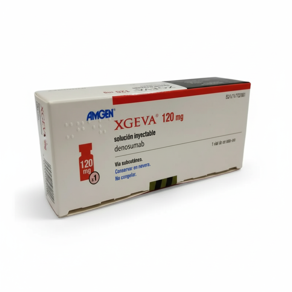 Xgeva (denosumab) is a prescription medicine used to prevent serious bone complications in adults with cancer that has spread to the bone (bone metastases), in patients with multiple myeloma, or to treat giant cell tumors of the bone that cannot be removed by surgery. The medicine is administered as a subcutaneous injection, typically into the thigh, abdomen, or upper arm.